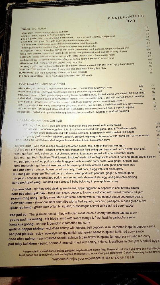 Basil Canteen, located in San Francisco's South of Market area, offers a modern twist on Thai cuisine. With a range of options including Crispy Shrimp Chips with flavorful sauces, Pad Seew with customizable protein choices, and standout dishes like Shrimp Pad Thai and Chicken Red Curry, the menu at Basil Canteen impresses with its flavors and presentation. The restaurant's ambience is praised for its spacious and airy feel, making it an ideal spot for both intimate dinners and group gatherings. The cocktails are vibrant and refreshing, complementing the dishes perfectly. Overall, Basil Canteen is a must-visit for those seeking delicious Thai food in a trendy setting.